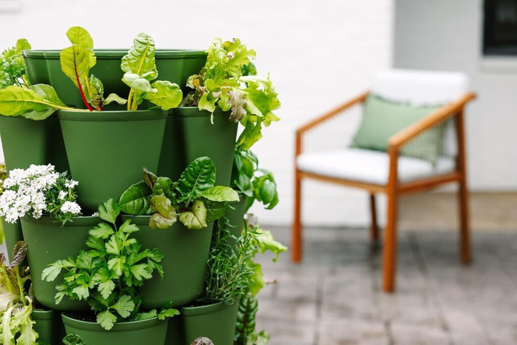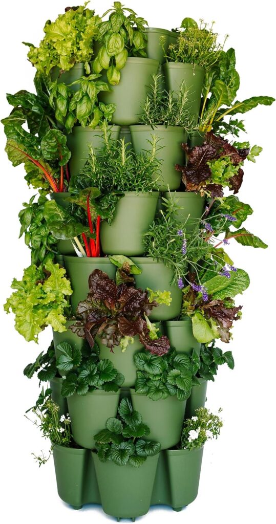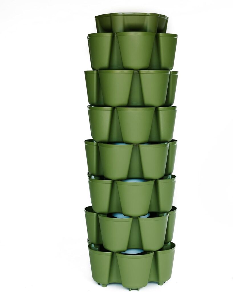 If you want to push the boundaries of what a small patio or deck can produce, this vertical garden is a structural masterpiece. The GreenStalk 7-Tier Vertical Planter offers 42 deep planting pockets, allowing you to grow a massive variety of root crops, flowers, herbs, and vegetables in a tiny footprint.